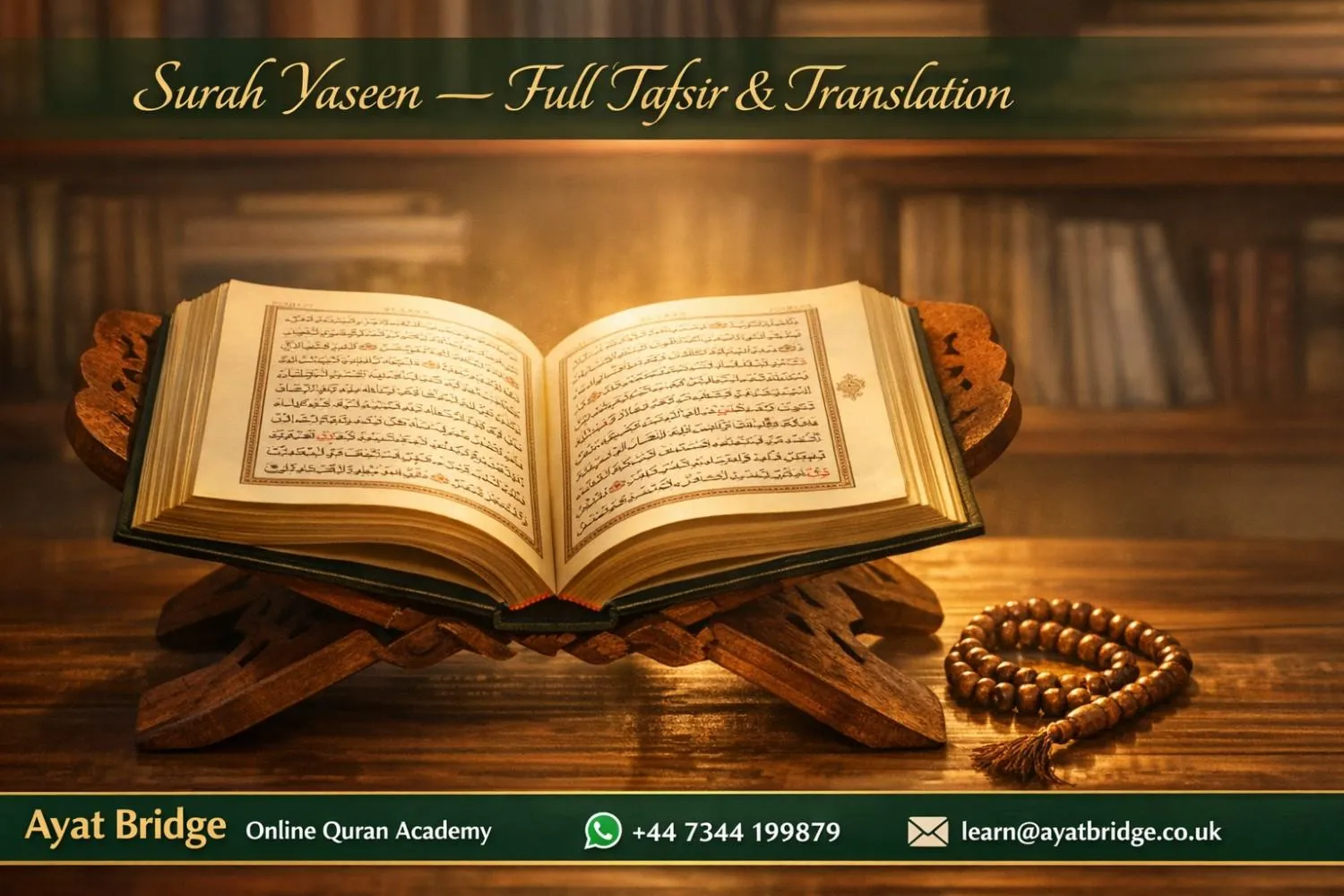 Want to understand every Surah at this level of depth? Our Quran Translation and Tafsir course at Ayat Bridge covers Surah Yaseen, Al-Kahf, Ar-Rahman and dozens more — word by word, meaning by meaning. Book a free trial at ayatbridge.co.uk
